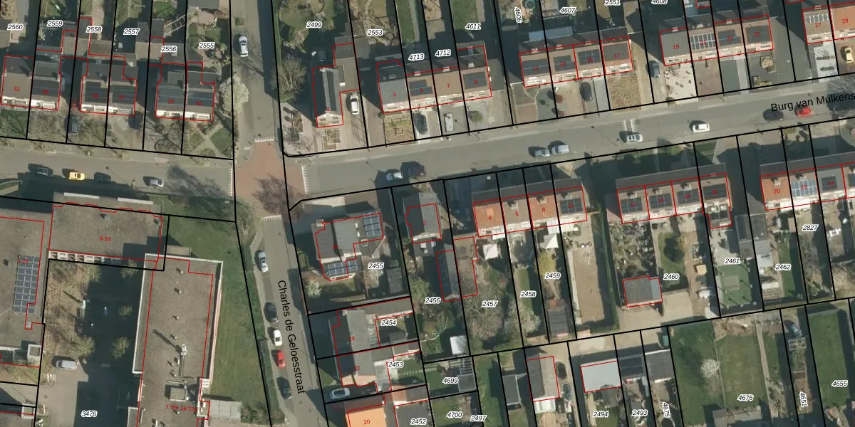 Gebruik de zoekbalk of klik op een perceel voor informatie over de adressen binnen dit perceel.