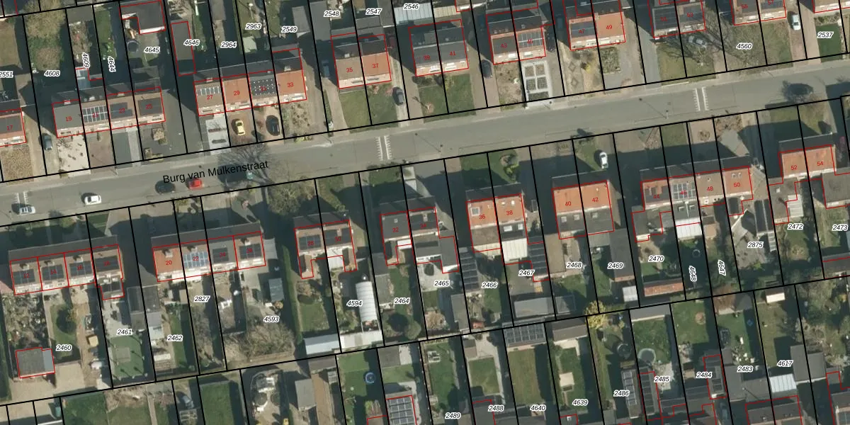 Het perceel waarop Burg van Mulkenstraat 34 staat heeft een oppervlakte van 426 m². Dit is een groot perceel. De perceeloppervlakte wordt geregistreerd door het Kadaster. Gedetailleerde informatie over de maten van dit perceel kunt u vinden in het rapport Kadastrale kaart met maatvoering van Burg van Mulkenstraat 34.
