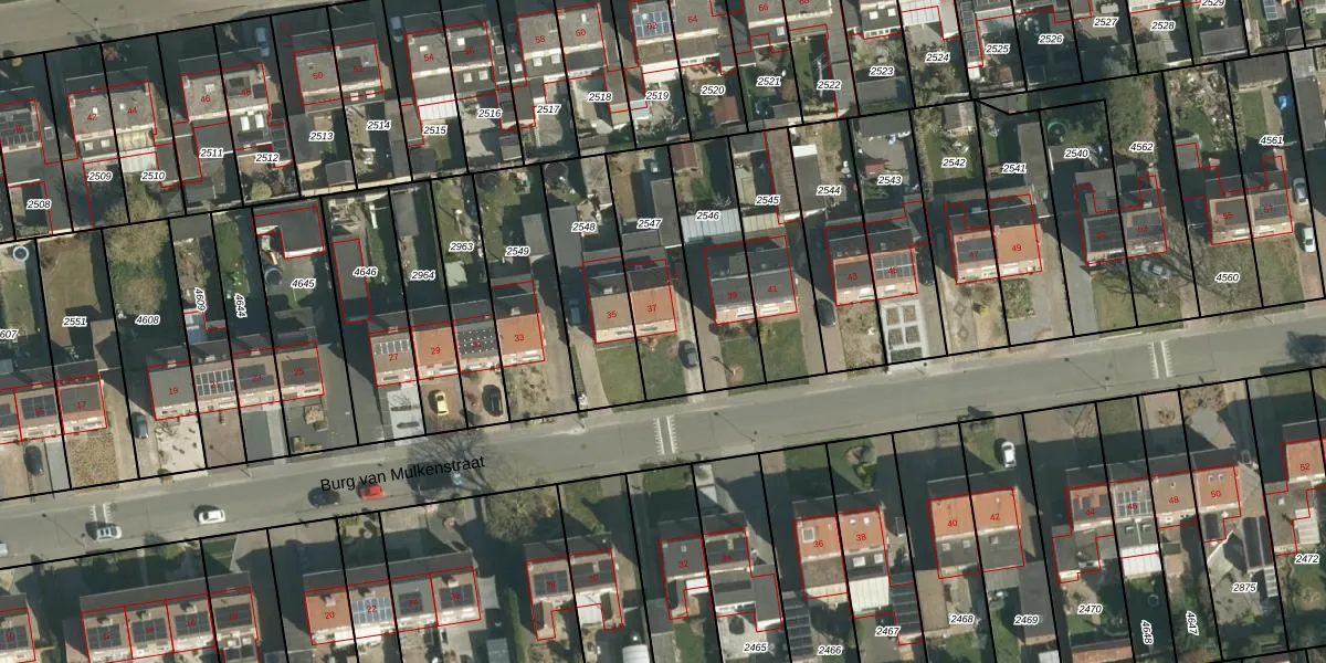 Burg van Mulkenstraat 37 is gelegen op kadastraal perceel ELO00A2547. Deze kadastrale aanduiding is uniek en wordt gebruikt door het Kadaster om eigendomsrechten en andere zakelijke rechten vast te leggen. Het perceel maakt onderdeel uit van de kadastrale gemeente Elsloo.