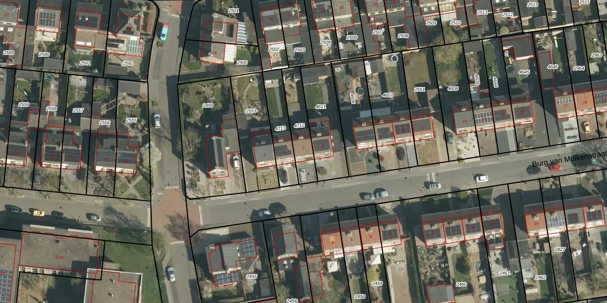Burg van Mulkenstraat 7 is gelegen op kadastraal perceel ELO00A4712. Deze kadastrale aanduiding is uniek en wordt gebruikt door het Kadaster om eigendomsrechten en andere zakelijke rechten vast te leggen. Het perceel maakt onderdeel uit van de kadastrale gemeente Elsloo.