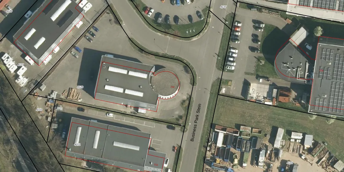 Het perceel waarop Business Park Stein 114 staat heeft een oppervlakte van 3413 m². Dit is een zeer groot perceel. De perceeloppervlakte wordt geregistreerd door het Kadaster. Gedetailleerde informatie over de maten van dit perceel kunt u vinden in het rapport Kadastrale kaart met maatvoering van Business Park Stein 114.
