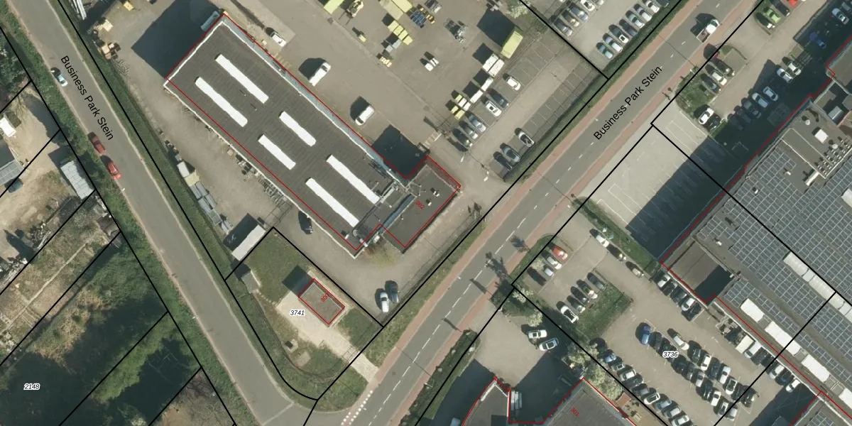 Het perceel waarop Business Park Stein 302 staat heeft een oppervlakte van 1,3 ha. Dit is een zeer groot perceel. De perceeloppervlakte wordt geregistreerd door het Kadaster. Gedetailleerde informatie over de maten van dit perceel kunt u vinden in het rapport Kadastrale kaart met maatvoering van Business Park Stein 302.