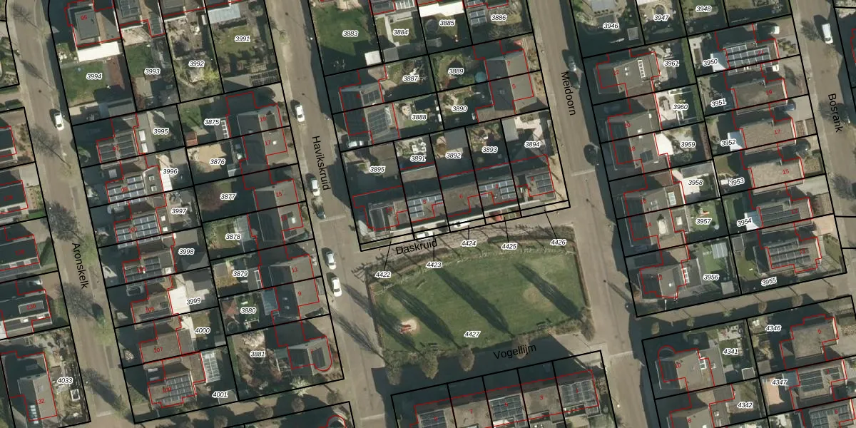 Het perceel waarop Daskruid 8 staat heeft een oppervlakte van 188 m². Dit is een middelgroot perceel. De perceeloppervlakte wordt geregistreerd door het Kadaster. Gedetailleerde informatie over de maten van dit perceel kunt u vinden in het rapport Kadastrale kaart met maatvoering van Daskruid 8.