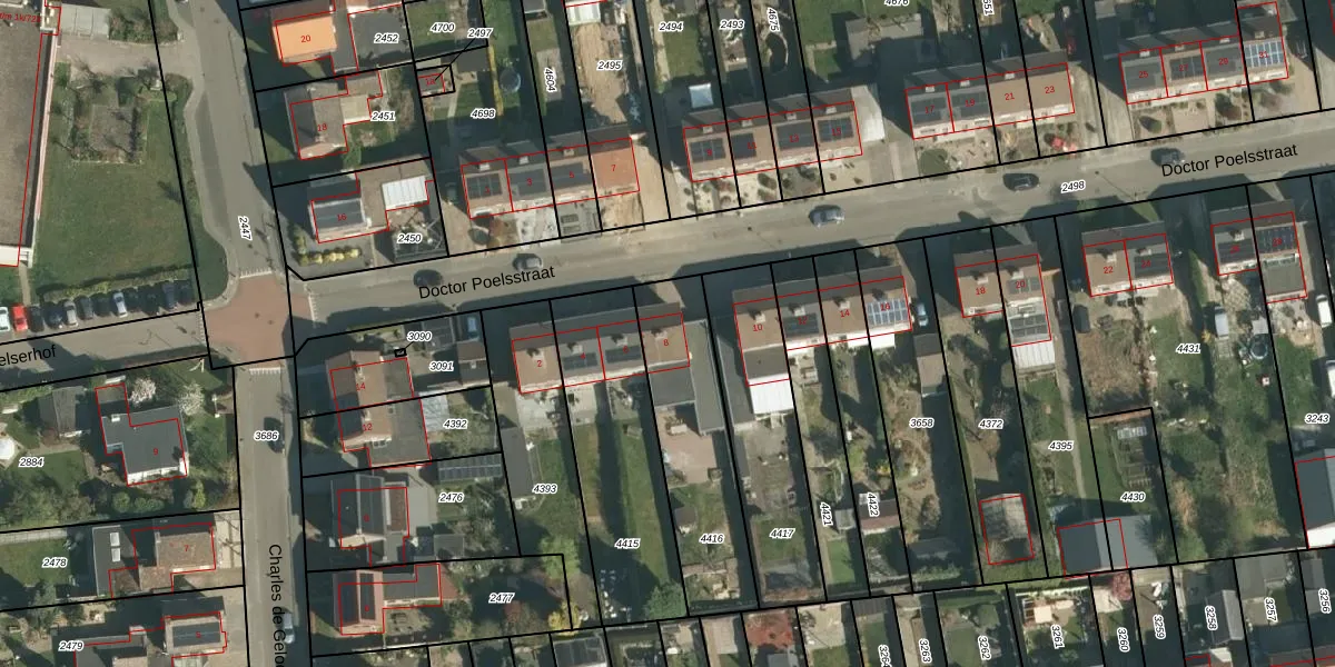 Gebruik de zoekbalk of klik op een perceel voor informatie over de adressen binnen dit perceel.