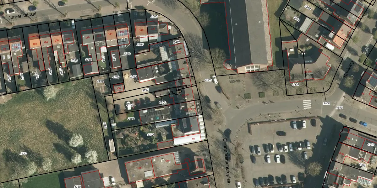 Dorine Verschureplein 16 is gelegen op kadastraal perceel ELO00B4180. Deze kadastrale aanduiding is uniek en wordt gebruikt door het Kadaster om eigendomsrechten en andere zakelijke rechten vast te leggen. Het perceel maakt onderdeel uit van de kadastrale gemeente Elsloo.