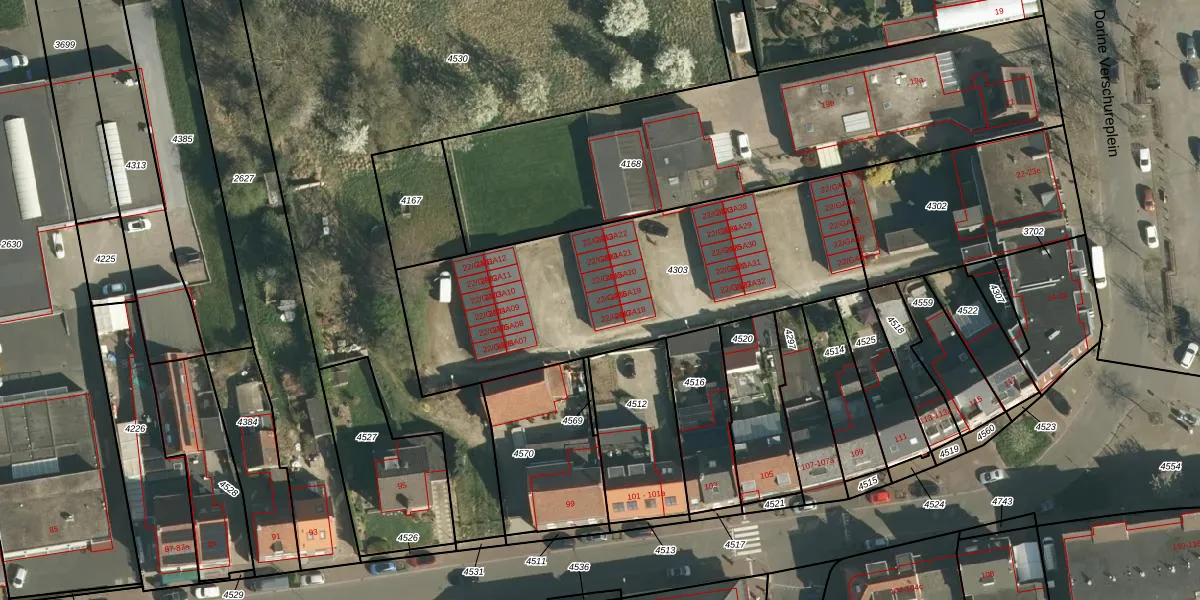 Dorine Verschureplein 22-GA16 is gelegen op kadastraal perceel ELO00B4303. Deze kadastrale aanduiding is uniek en wordt gebruikt door het Kadaster om eigendomsrechten en andere zakelijke rechten vast te leggen. Het perceel maakt onderdeel uit van de kadastrale gemeente Elsloo.