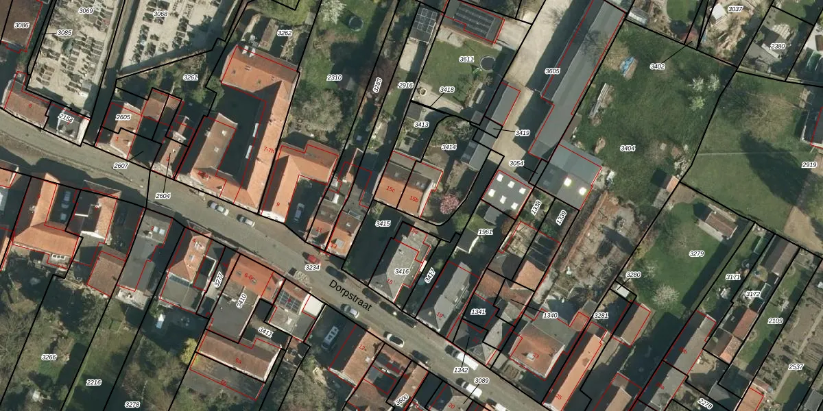 Het perceel waarop Dorpstraat 15-b staat heeft een oppervlakte van 350 m². Dit is een groot perceel. De perceeloppervlakte wordt geregistreerd door het Kadaster. Gedetailleerde informatie over de maten van dit perceel kunt u vinden in het rapport Kadastrale kaart met maatvoering van Dorpstraat 15-b.