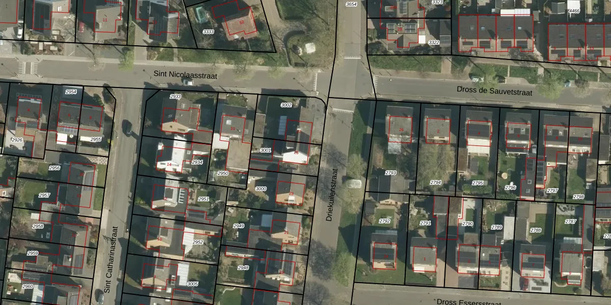 Gebruik de zoekbalk of klik op een perceel voor informatie over de adressen binnen dit perceel.