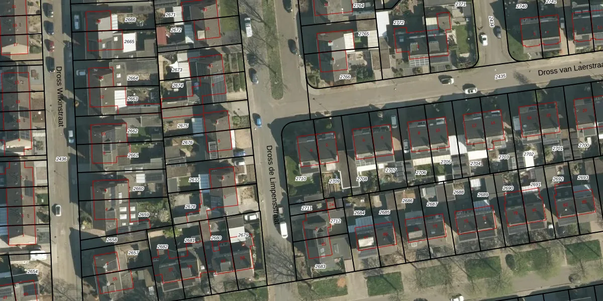 Het perceel waarop Dross de Limpensstraat 4 staat heeft een oppervlakte van 305 m². Dit is een groot perceel. De perceeloppervlakte wordt geregistreerd door het Kadaster. Gedetailleerde informatie over de maten van dit perceel kunt u vinden in het rapport Kadastrale kaart met maatvoering van Dross de Limpensstraat 4.