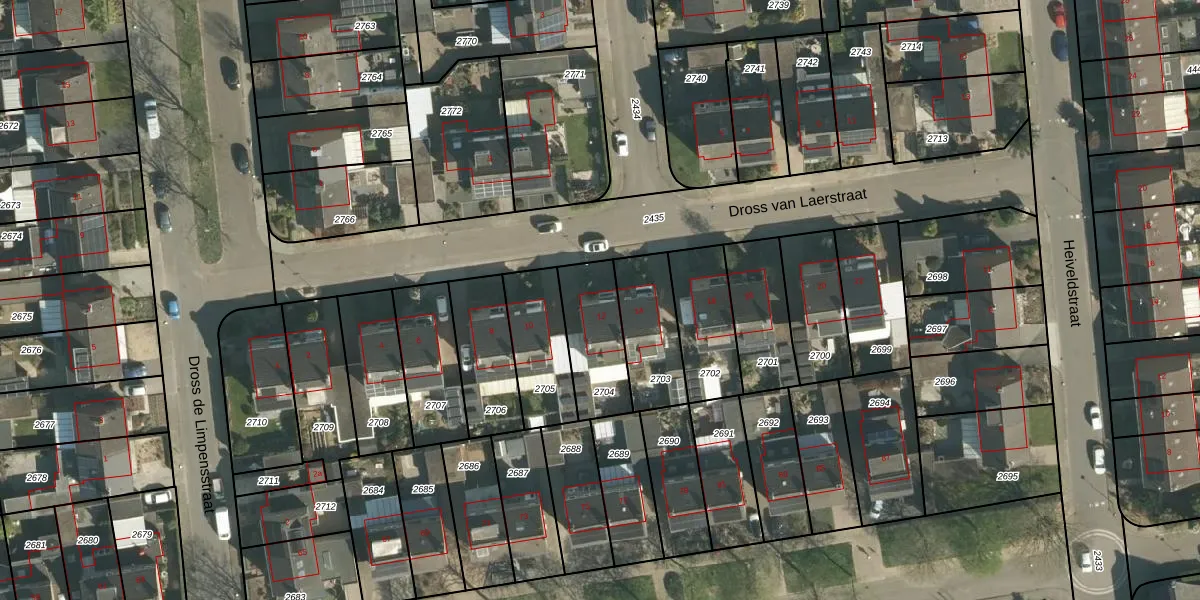 Het perceel waarop Dross van Laerstraat 12 staat heeft een oppervlakte van 239 m². Dit is een middelgroot perceel. De perceeloppervlakte wordt geregistreerd door het Kadaster. Gedetailleerde informatie over de maten van dit perceel kunt u vinden in het rapport Kadastrale kaart met maatvoering van Dross van Laerstraat 12.
