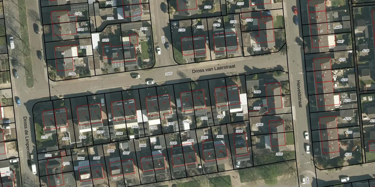 Dross van Laerstraat 16 is gelegen op kadastraal perceel ELO00A2702. Deze kadastrale aanduiding is uniek en wordt gebruikt door het Kadaster om eigendomsrechten en andere zakelijke rechten vast te leggen. Het perceel maakt onderdeel uit van de kadastrale gemeente Elsloo.