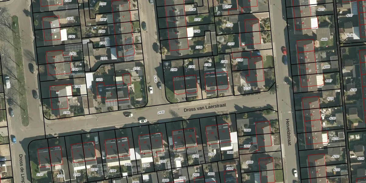 Dross van Laerstraat 5 is gelegen op kadastraal perceel ELO00A2740. Deze kadastrale aanduiding is uniek en wordt gebruikt door het Kadaster om eigendomsrechten en andere zakelijke rechten vast te leggen. Het perceel maakt onderdeel uit van de kadastrale gemeente Elsloo.