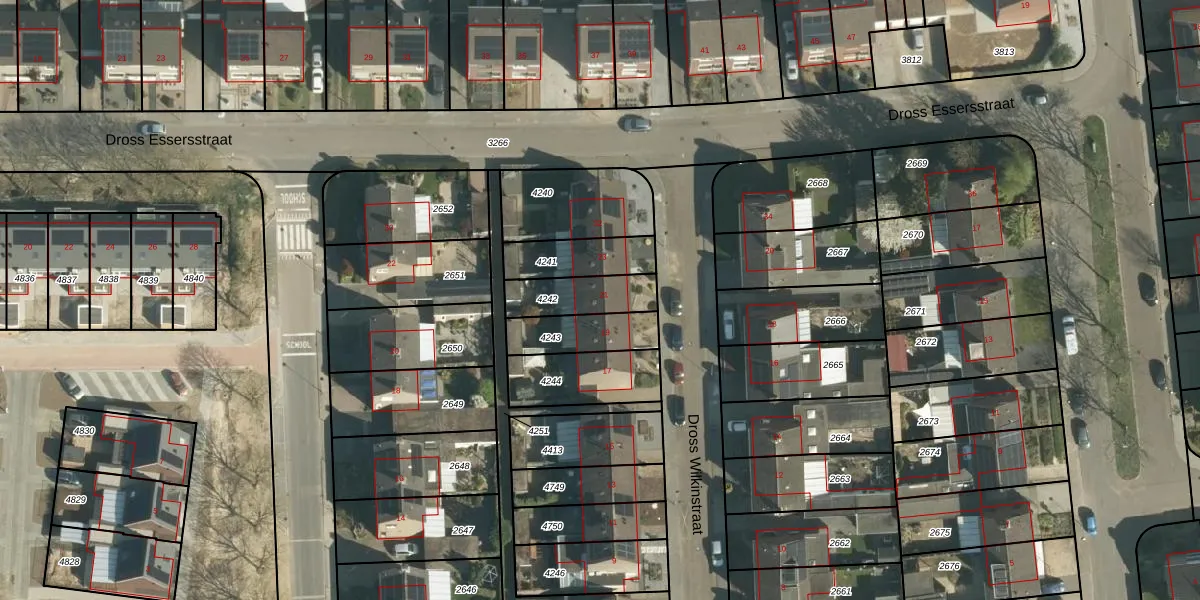Dross Wilkinstraat 21 is gelegen op kadastraal perceel ELO00A4242. Deze kadastrale aanduiding is uniek en wordt gebruikt door het Kadaster om eigendomsrechten en andere zakelijke rechten vast te leggen. Het perceel maakt onderdeel uit van de kadastrale gemeente Elsloo.