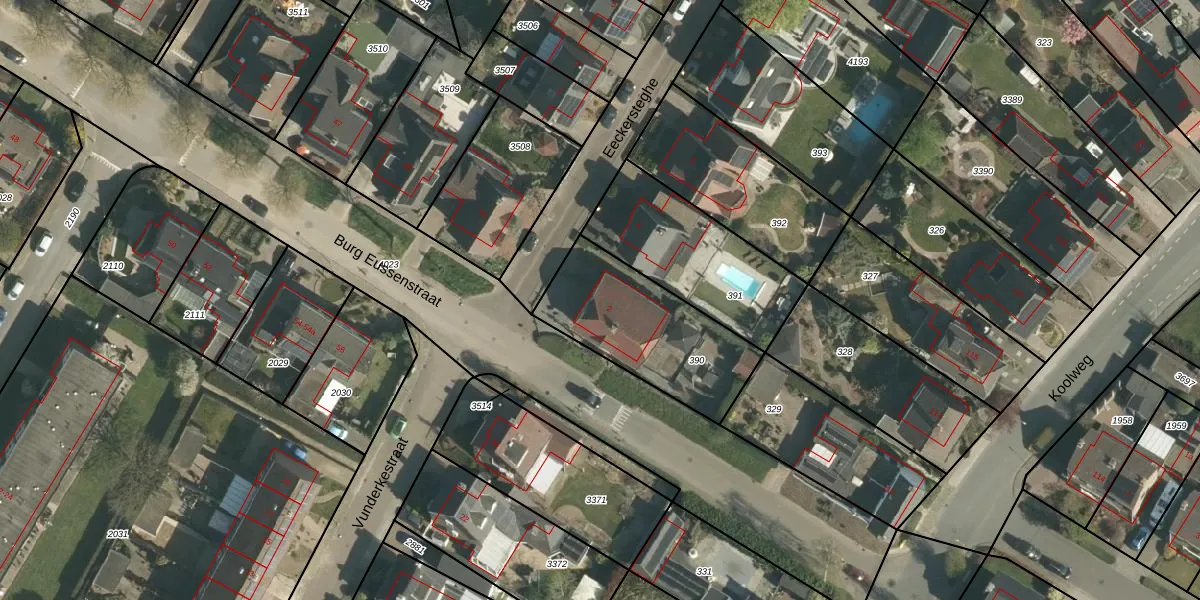 Het perceel waarop Eeckersteghe 2 staat heeft een oppervlakte van 500 m². Dit is een groot perceel. De perceeloppervlakte wordt geregistreerd door het Kadaster. Gedetailleerde informatie over de maten van dit perceel kunt u vinden in het rapport Kadastrale kaart met maatvoering van Eeckersteghe 2.