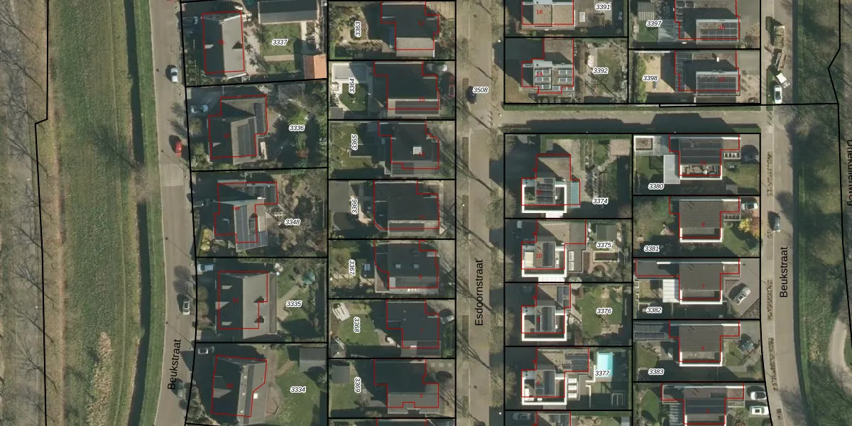 Gebruik de zoekbalk of klik op een perceel voor informatie over de adressen binnen dit perceel.
