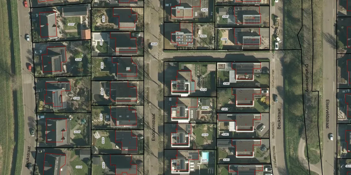 Esdoornstraat 12 is gelegen op kadastraal perceel ELO00C3374. Deze kadastrale aanduiding is uniek en wordt gebruikt door het Kadaster om eigendomsrechten en andere zakelijke rechten vast te leggen. Het perceel maakt onderdeel uit van de kadastrale gemeente Elsloo.