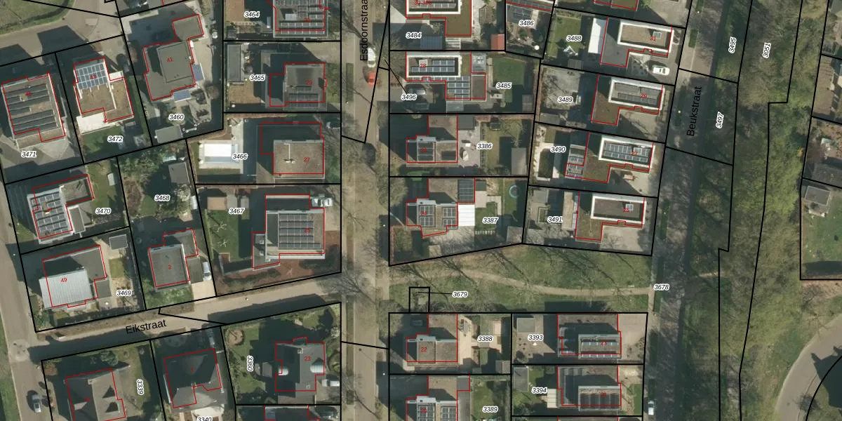 Esdoornstraat 24 is gelegen op kadastraal perceel ELO00C3387. Deze kadastrale aanduiding is uniek en wordt gebruikt door het Kadaster om eigendomsrechten en andere zakelijke rechten vast te leggen. Het perceel maakt onderdeel uit van de kadastrale gemeente Elsloo.