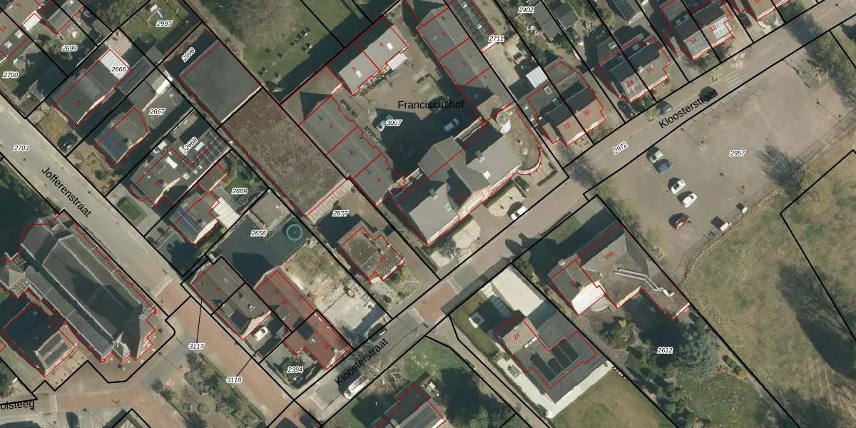 Franciscushof 14 is gelegen op kadastraal perceel ELO00D3007. Deze kadastrale aanduiding is uniek en wordt gebruikt door het Kadaster om eigendomsrechten en andere zakelijke rechten vast te leggen. Het perceel maakt onderdeel uit van de kadastrale gemeente Elsloo.