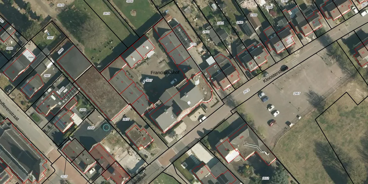 Franciscushof 15 is gelegen op kadastraal perceel ELO00D3007. Deze kadastrale aanduiding is uniek en wordt gebruikt door het Kadaster om eigendomsrechten en andere zakelijke rechten vast te leggen. Het perceel maakt onderdeel uit van de kadastrale gemeente Elsloo.