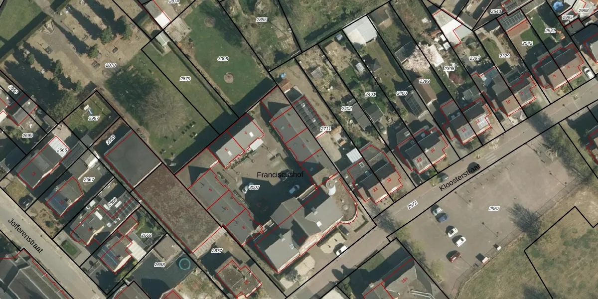 Franciscushof 2 is gelegen op kadastraal perceel ELO00D3007. Deze kadastrale aanduiding is uniek en wordt gebruikt door het Kadaster om eigendomsrechten en andere zakelijke rechten vast te leggen. Het perceel maakt onderdeel uit van de kadastrale gemeente Elsloo.