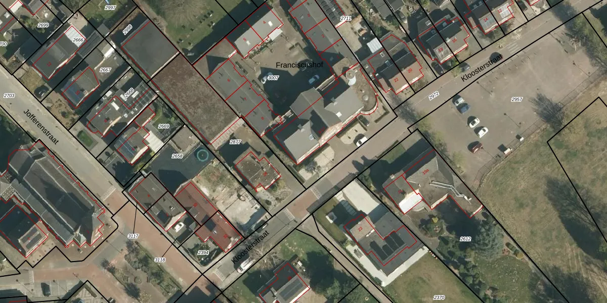 Franciscushof 9 is gelegen op kadastraal perceel ELO00D3007. Deze kadastrale aanduiding is uniek en wordt gebruikt door het Kadaster om eigendomsrechten en andere zakelijke rechten vast te leggen. Het perceel maakt onderdeel uit van de kadastrale gemeente Elsloo.