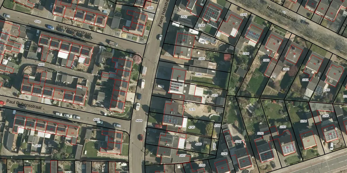 Het perceel waarop Frans Halsstraat 12 staat heeft een oppervlakte van 435 m². Dit is een groot perceel. De perceeloppervlakte wordt geregistreerd door het Kadaster. Gedetailleerde informatie over de maten van dit perceel kunt u vinden in het rapport Kadastrale kaart met maatvoering van Frans Halsstraat 12.