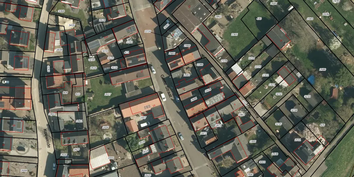 Gebruik de zoekbalk of klik op een perceel voor informatie over de adressen binnen dit perceel.