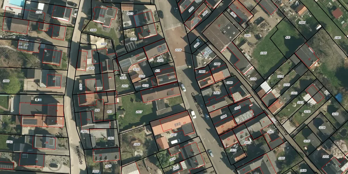 Gebruik de zoekbalk of klik op een perceel voor informatie over de adressen binnen dit perceel.