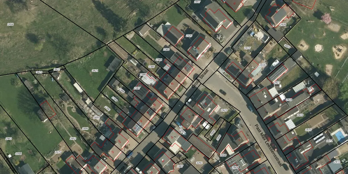 Grote Straat 87 is gelegen op kadastraal perceel ELO00D2385. Deze kadastrale aanduiding is uniek en wordt gebruikt door het Kadaster om eigendomsrechten en andere zakelijke rechten vast te leggen. Het perceel maakt onderdeel uit van de kadastrale gemeente Elsloo.