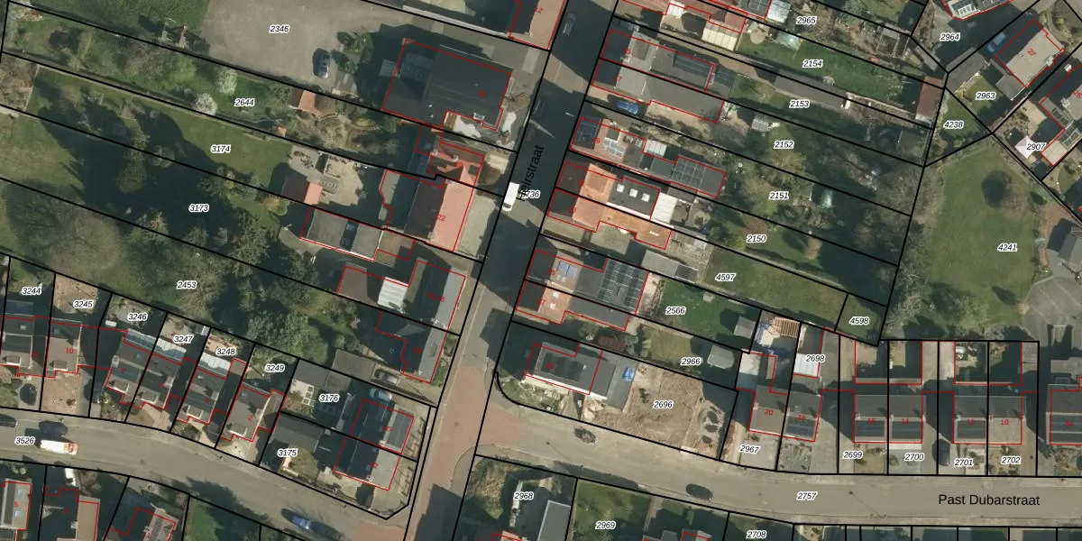 Gebruik de zoekbalk of klik op een perceel voor informatie over de adressen binnen dit perceel.