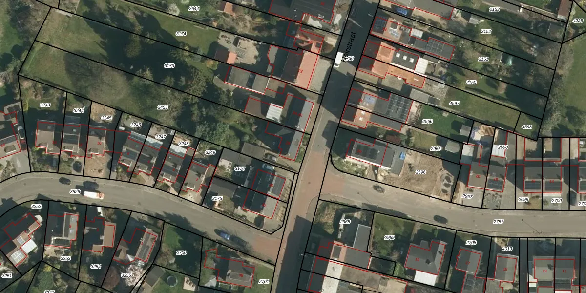 Gebruik de zoekbalk of klik op een perceel voor informatie over de adressen binnen dit perceel.