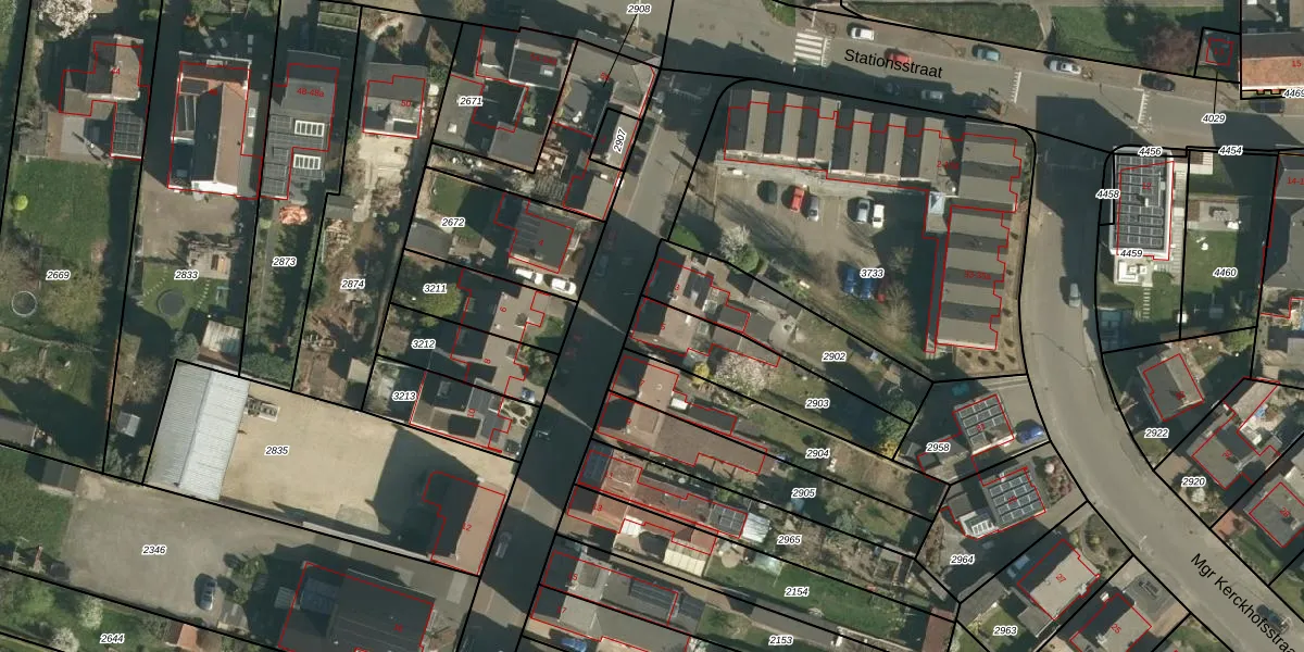 Gebruik de zoekbalk of klik op een perceel voor informatie over de adressen binnen dit perceel.