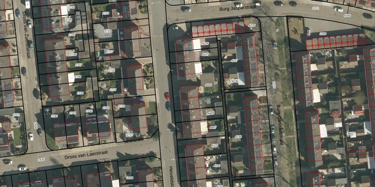 Het perceel waarop Heiveldstraat 28 staat heeft een oppervlakte van 654 m². Dit is een groot perceel. De perceeloppervlakte wordt geregistreerd door het Kadaster. Gedetailleerde informatie over de maten van dit perceel kunt u vinden in het rapport Kadastrale kaart met maatvoering van Heiveldstraat 28.