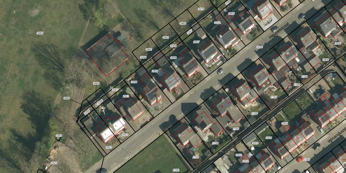Het perceel waarop Heuvelstraat 9 staat heeft een oppervlakte van 336 m². Dit is een groot perceel. De perceeloppervlakte wordt geregistreerd door het Kadaster. Gedetailleerde informatie over de maten van dit perceel kunt u vinden in het rapport Kadastrale kaart met maatvoering van Heuvelstraat 9.
