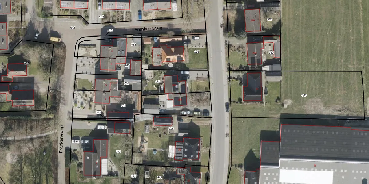 Gebruik de zoekbalk of klik op een perceel voor informatie over de adressen binnen dit perceel.