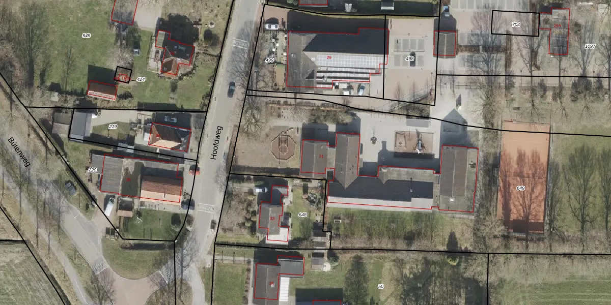 Het perceel waarop Hoofdweg 31 staat heeft een oppervlakte van 5585 m². Dit is een zeer groot perceel. De perceeloppervlakte wordt geregistreerd door het Kadaster. Gedetailleerde informatie over de maten van dit perceel kunt u vinden in het rapport Kadastrale kaart met maatvoering van Hoofdweg 31.
