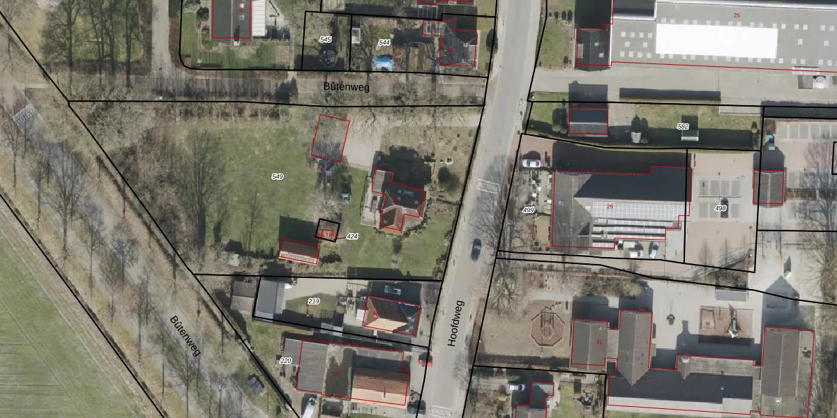 Het perceel waarop Hoofdweg 34 staat heeft een oppervlakte van 3265 m². Dit is een zeer groot perceel. De perceeloppervlakte wordt geregistreerd door het Kadaster. Gedetailleerde informatie over de maten van dit perceel kunt u vinden in het rapport Kadastrale kaart met maatvoering van Hoofdweg 34.