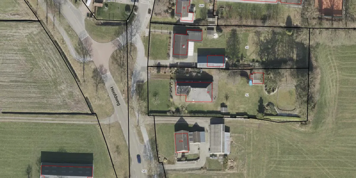 Het perceel waarop Hoofdweg 37 staat heeft een oppervlakte van 2500 m². Dit is een zeer groot perceel. De perceeloppervlakte wordt geregistreerd door het Kadaster. Gedetailleerde informatie over de maten van dit perceel kunt u vinden in het rapport Kadastrale kaart met maatvoering van Hoofdweg 37.