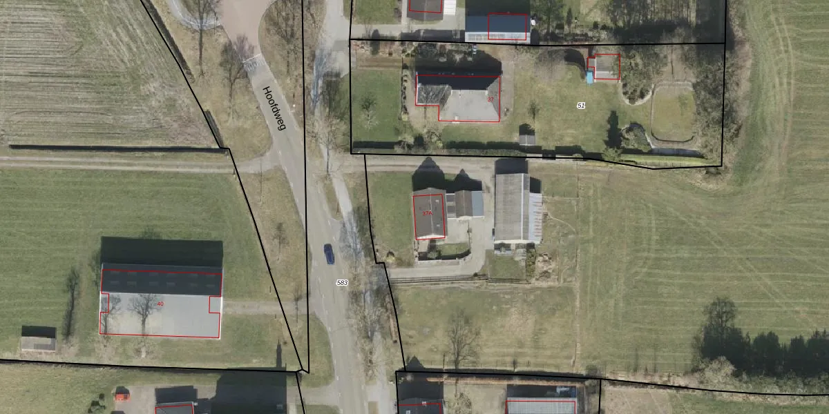 Het perceel waarop Hoofdweg 37-A staat heeft een oppervlakte van 2,9 ha. Dit is een zeer groot perceel. De perceeloppervlakte wordt geregistreerd door het Kadaster. Gedetailleerde informatie over de maten van dit perceel kunt u vinden in het rapport Kadastrale kaart met maatvoering van Hoofdweg 37-A.
