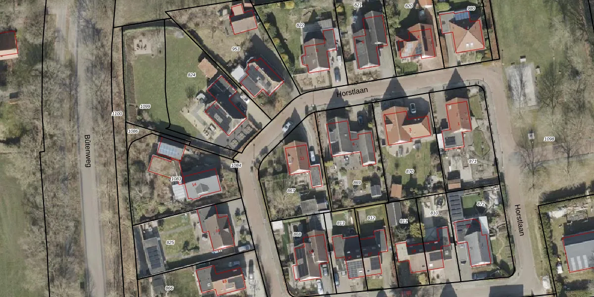 Het perceel waarop Horstlaan 11 staat heeft een oppervlakte van 594 m². Dit is een groot perceel. De perceeloppervlakte wordt geregistreerd door het Kadaster. Gedetailleerde informatie over de maten van dit perceel kunt u vinden in het rapport Kadastrale kaart met maatvoering van Horstlaan 11.