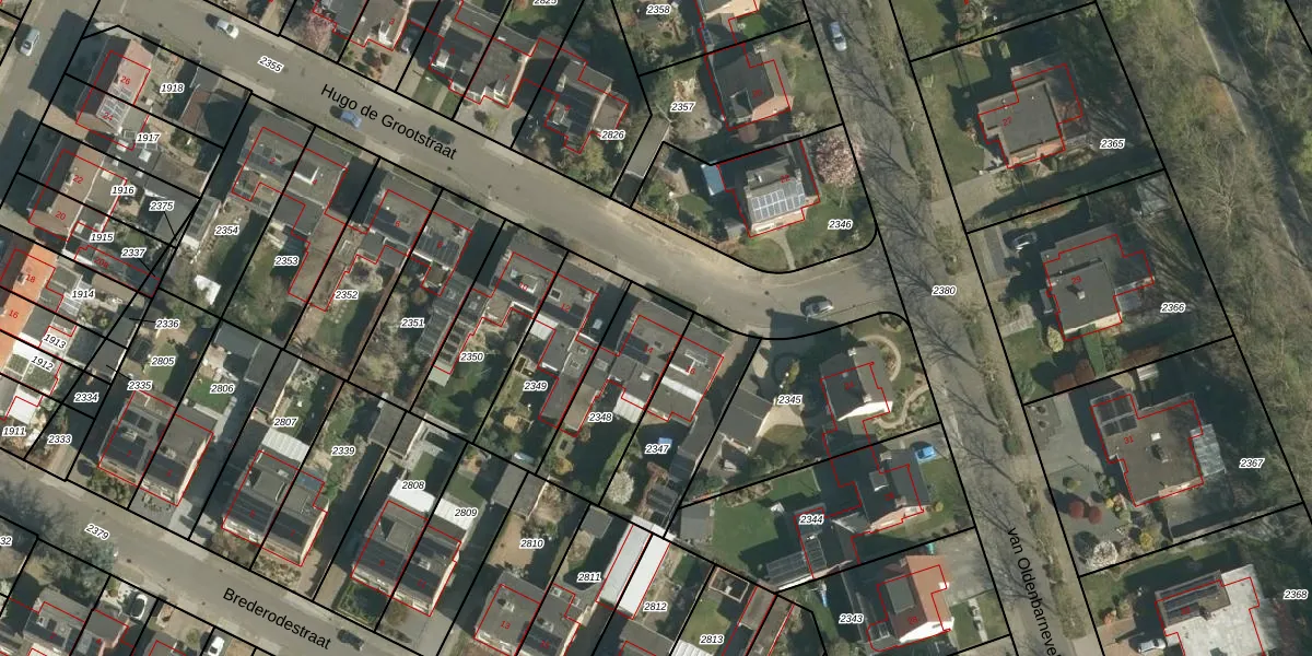 Het perceel waarop Hugo de Grootstraat 14 staat heeft een oppervlakte van 351 m². Dit is een groot perceel. De perceeloppervlakte wordt geregistreerd door het Kadaster. Gedetailleerde informatie over de maten van dit perceel kunt u vinden in het rapport Kadastrale kaart met maatvoering van Hugo de Grootstraat 14.