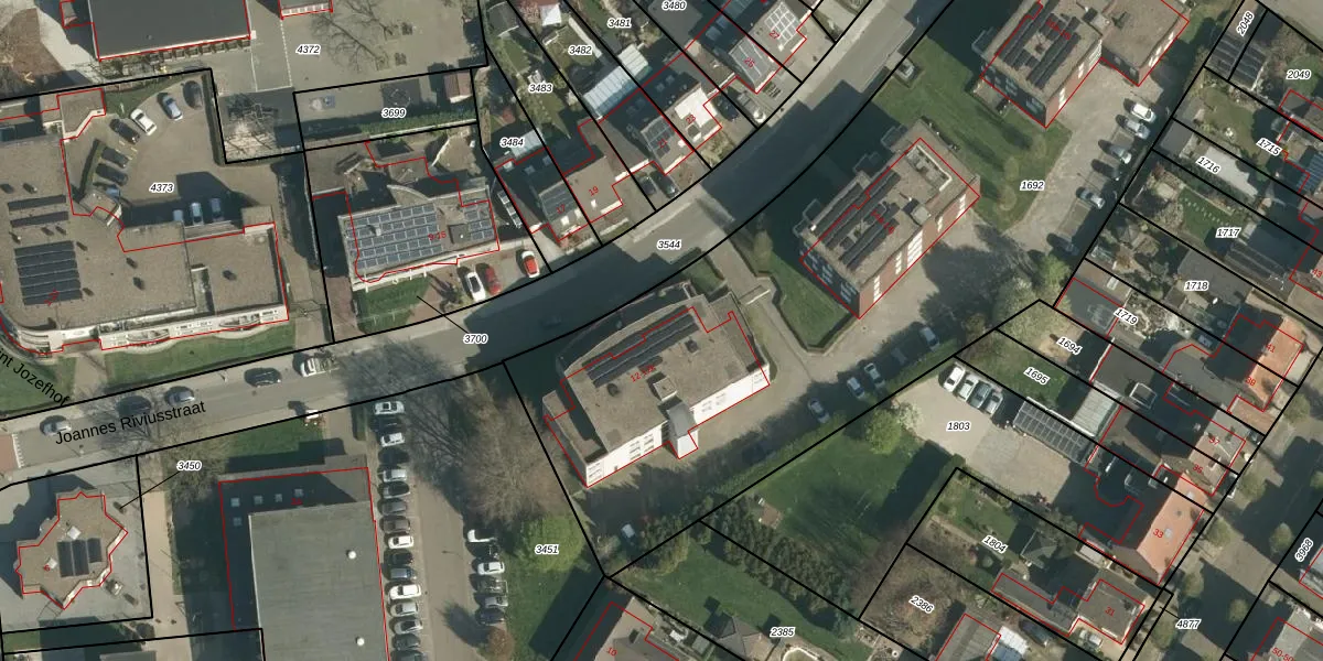 Joannes Riviusstraat 12 is gelegen op kadastraal perceel ELO00A1692. Deze kadastrale aanduiding is uniek en wordt gebruikt door het Kadaster om eigendomsrechten en andere zakelijke rechten vast te leggen. Het perceel maakt onderdeel uit van de kadastrale gemeente Elsloo.
