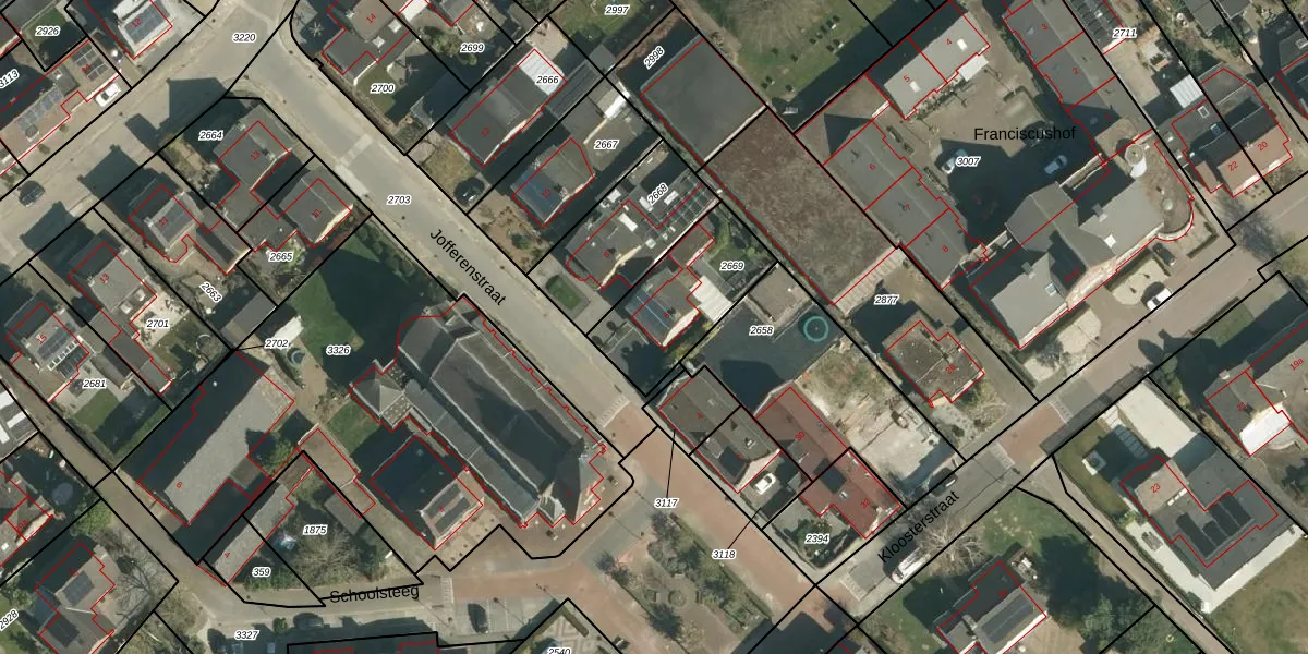 Jofferenstraat 6 is gelegen op kadastraal perceel ELO00D2669. Deze kadastrale aanduiding is uniek en wordt gebruikt door het Kadaster om eigendomsrechten en andere zakelijke rechten vast te leggen. Het perceel maakt onderdeel uit van de kadastrale gemeente Elsloo.