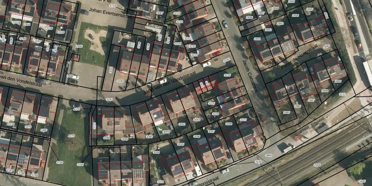 Het perceel waarop Joost van den Vondelstraat 26 staat heeft een oppervlakte van 227 m². Dit is een middelgroot perceel. De perceeloppervlakte wordt geregistreerd door het Kadaster. Gedetailleerde informatie over de maten van dit perceel kunt u vinden in het rapport Kadastrale kaart met maatvoering van Joost van den Vondelstraat 26.