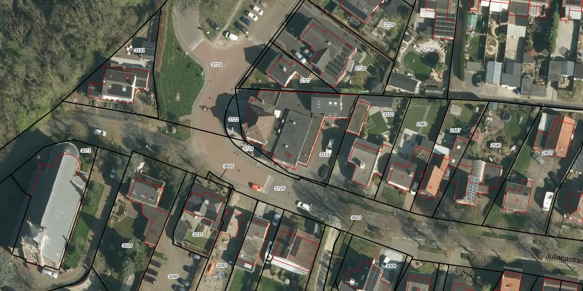 Het perceel waarop Julianastraat 3 staat heeft een oppervlakte van 885 m². Dit is een groot perceel. De perceeloppervlakte wordt geregistreerd door het Kadaster. Gedetailleerde informatie over de maten van dit perceel kunt u vinden in het rapport Kadastrale kaart met maatvoering van Julianastraat 3.