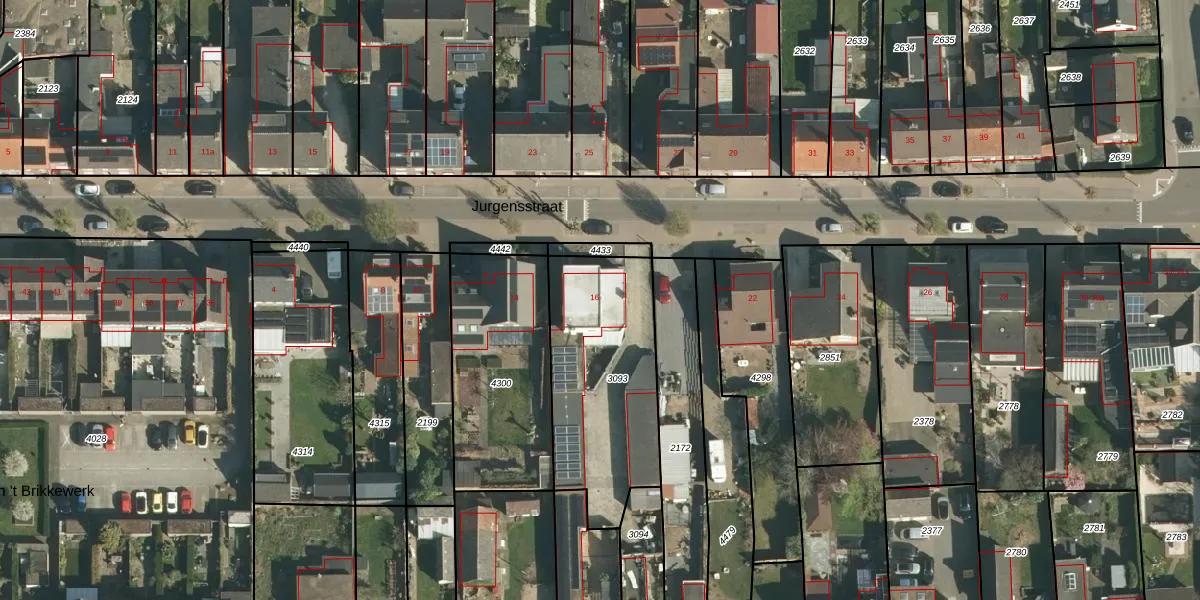 Jurgensstraat 16 is gelegen op kadastraal perceel ELO00B3093. Deze kadastrale aanduiding is uniek en wordt gebruikt door het Kadaster om eigendomsrechten en andere zakelijke rechten vast te leggen. Het perceel maakt onderdeel uit van de kadastrale gemeente Elsloo.