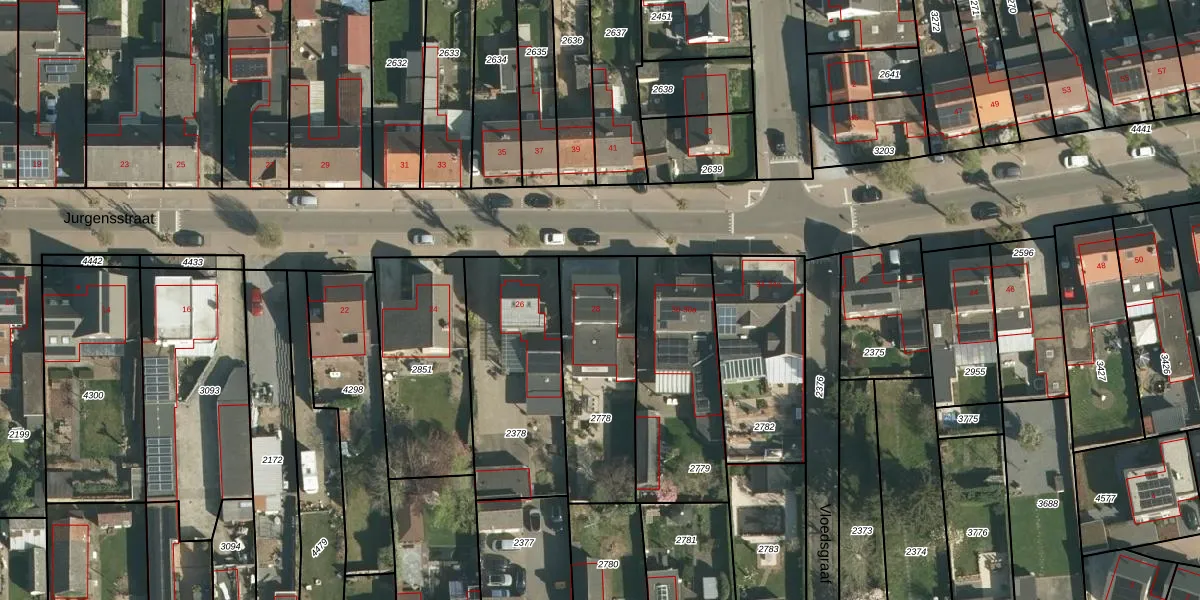 Jurgensstraat 28 is gelegen op kadastraal perceel ELO00B2778. Deze kadastrale aanduiding is uniek en wordt gebruikt door het Kadaster om eigendomsrechten en andere zakelijke rechten vast te leggen. Het perceel maakt onderdeel uit van de kadastrale gemeente Elsloo.