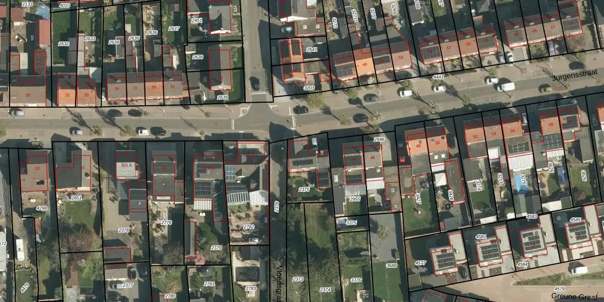 Jurgensstraat 42 is gelegen op kadastraal perceel ELO00B2375. Deze kadastrale aanduiding is uniek en wordt gebruikt door het Kadaster om eigendomsrechten en andere zakelijke rechten vast te leggen. Het perceel maakt onderdeel uit van de kadastrale gemeente Elsloo.