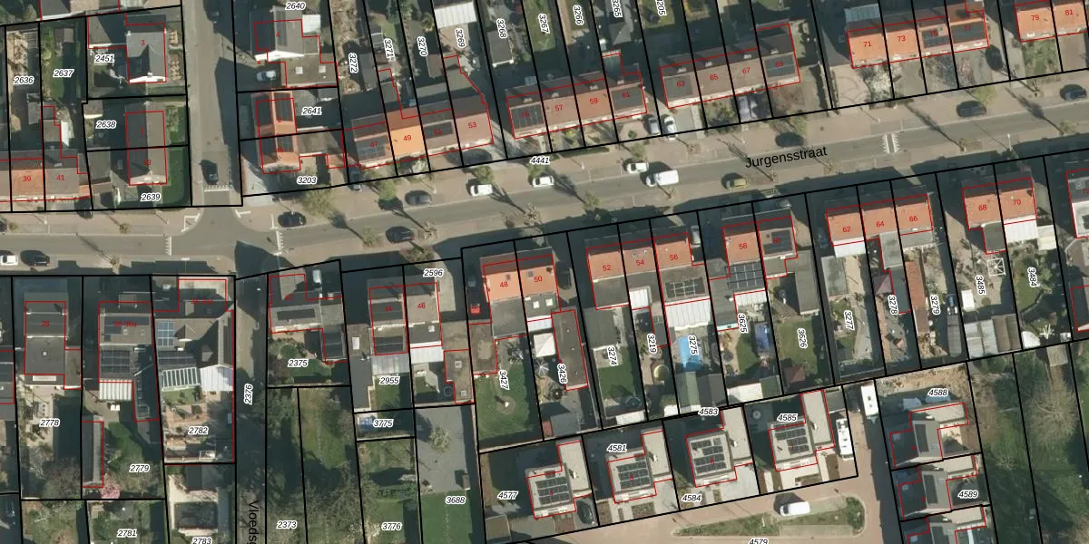 Jurgensstraat 50 is gelegen op kadastraal perceel ELO00B3426. Deze kadastrale aanduiding is uniek en wordt gebruikt door het Kadaster om eigendomsrechten en andere zakelijke rechten vast te leggen. Het perceel maakt onderdeel uit van de kadastrale gemeente Elsloo.