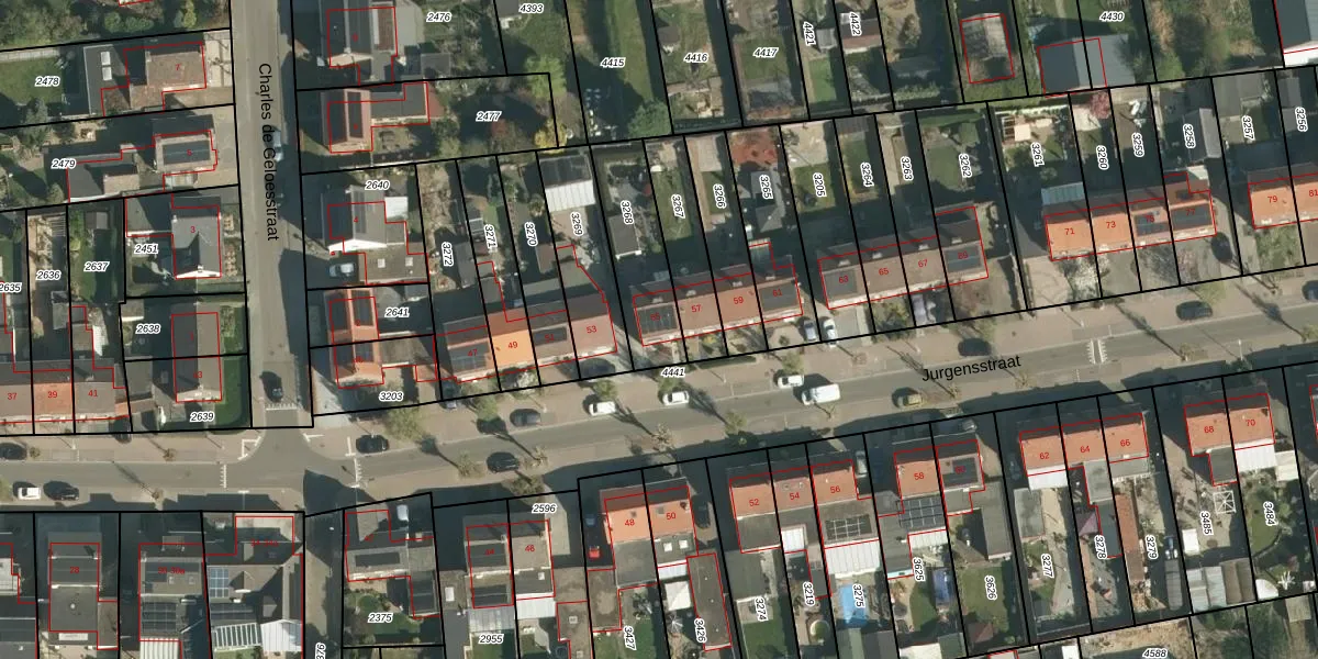Jurgensstraat 55 is gelegen op kadastraal perceel ELO00B3268. Deze kadastrale aanduiding is uniek en wordt gebruikt door het Kadaster om eigendomsrechten en andere zakelijke rechten vast te leggen. Het perceel maakt onderdeel uit van de kadastrale gemeente Elsloo.